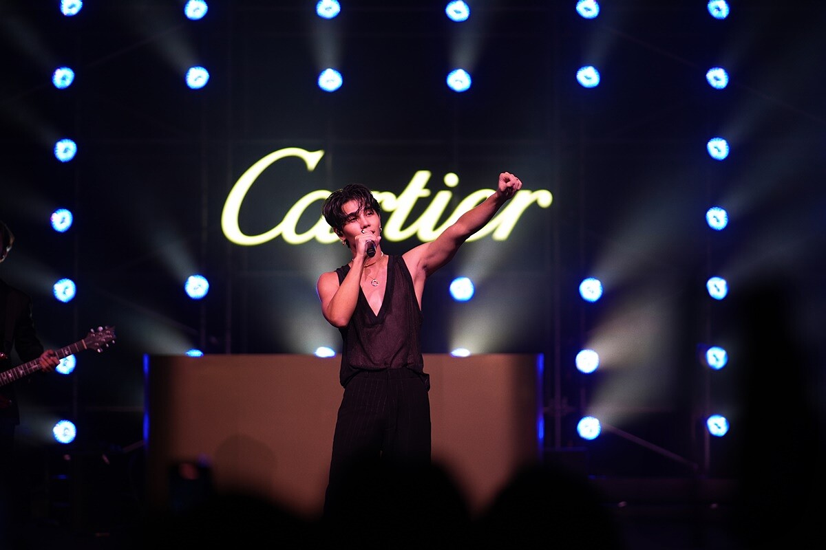逛完藝術展覽的晚間,輪到一夜限定派對盛大登場。Cartier 品牌形象大使 Jisoo 金智秀和王嘉爾合體,各自穿搭、演繹三環珠寶的時髦模樣,Jisoo 跳脫框架將其當作髮飾來點綴造型,韓國代言人盧允瑞、泰國代言人Tor Thanapob也現身,派對表演由雪梨舞蹈團(Sydney Dance Company)的三人舞蹈揭開序幕,接著新加坡鋼琴家李楚人(Churen Li)等人輪番登場,最後以泰國歌手 Jeff Satur 人氣金曲演唱為星光派對畫下完美句號,而當然,Cartier Trinity 的傳奇故事從未完結。