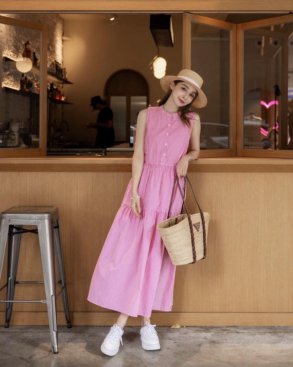 今年夏天穿細肩帶洋裝,選擇粉嫩色系準沒錯。配上一雙小白鞋,就能輕鬆打造出可愛又甜美的造型。