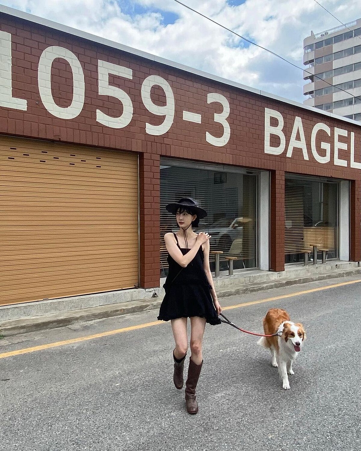 黑色短版洋裝搭配牛仔帽和長靴,長靴完美填補了腿部的視覺空缺,營造出帥氣又帶點可愛的西部牛仔風格。