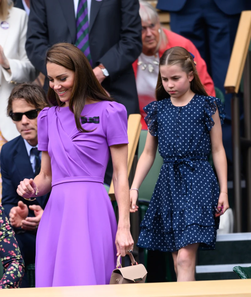 正在持續對抗癌症的凱特王妃,這回公開露面帶來出自Safiyaa London的紫色裙裝造型,還是一如既往的優雅時尚,看到她臉上的笑容和好氣色令人放心許多!而夏綠蒂公主的海軍藍色荷葉邊連衣裙,是不是特別可愛呀?