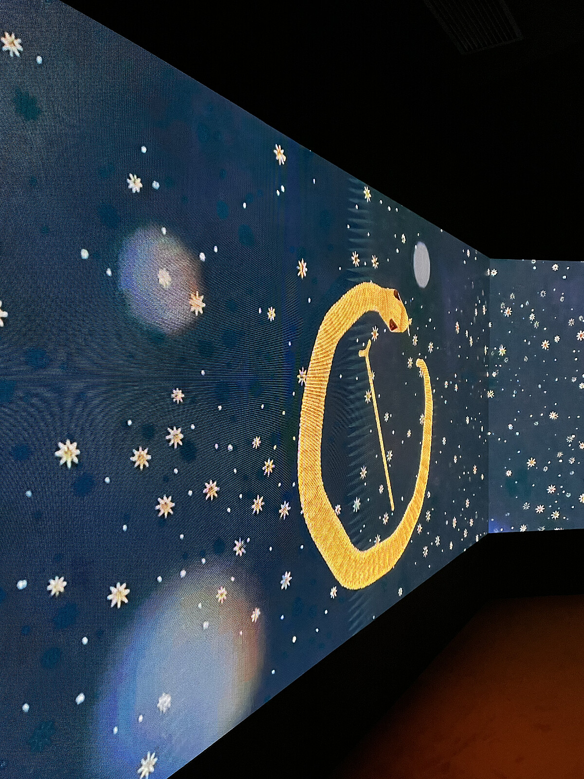 2)「寶格麗SERPENTI系列傳世蛻變」作品《光之種子》,這是由跨媒體藝術家吳俊勇從古希臘神話和華夏上古傳說中汲取靈感,以阿斯克勒庇俄斯之杖 (Rod of Asclepius) 和人首蛇身的伏羲氏與女媧形象爲原型,創造了出當代水墨動畫裝置,猶如穿越時空幻化萬物,在銜尾蛇的無盡循環中表達永恆生命力。