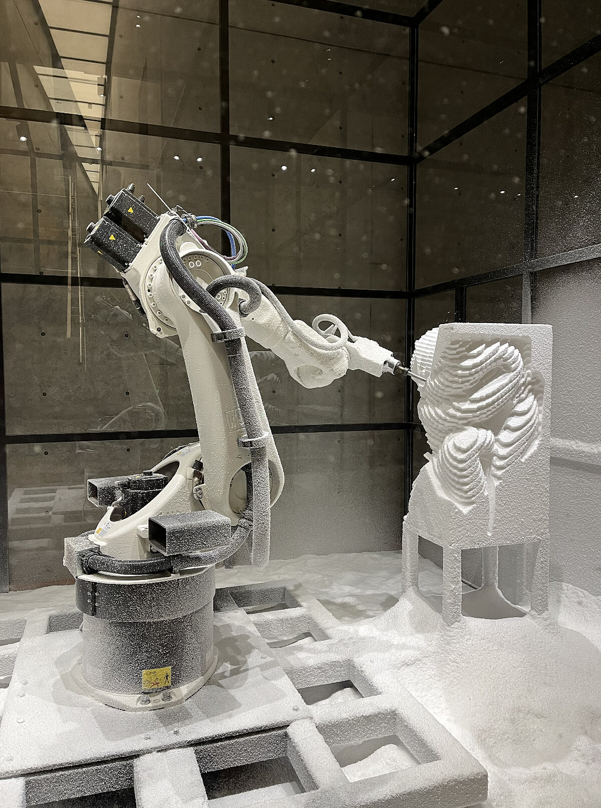 5)義大利藝術家Quayola將寶格麗標誌性的蛇形元素與現代演算法融合,創作機械裝置《Sculpture Factory: Serpenti》,運用大型工業機器人現場雕刻,創造出受蛇形啓發的幾何圖案,展開一場歷史與現代的對話。
