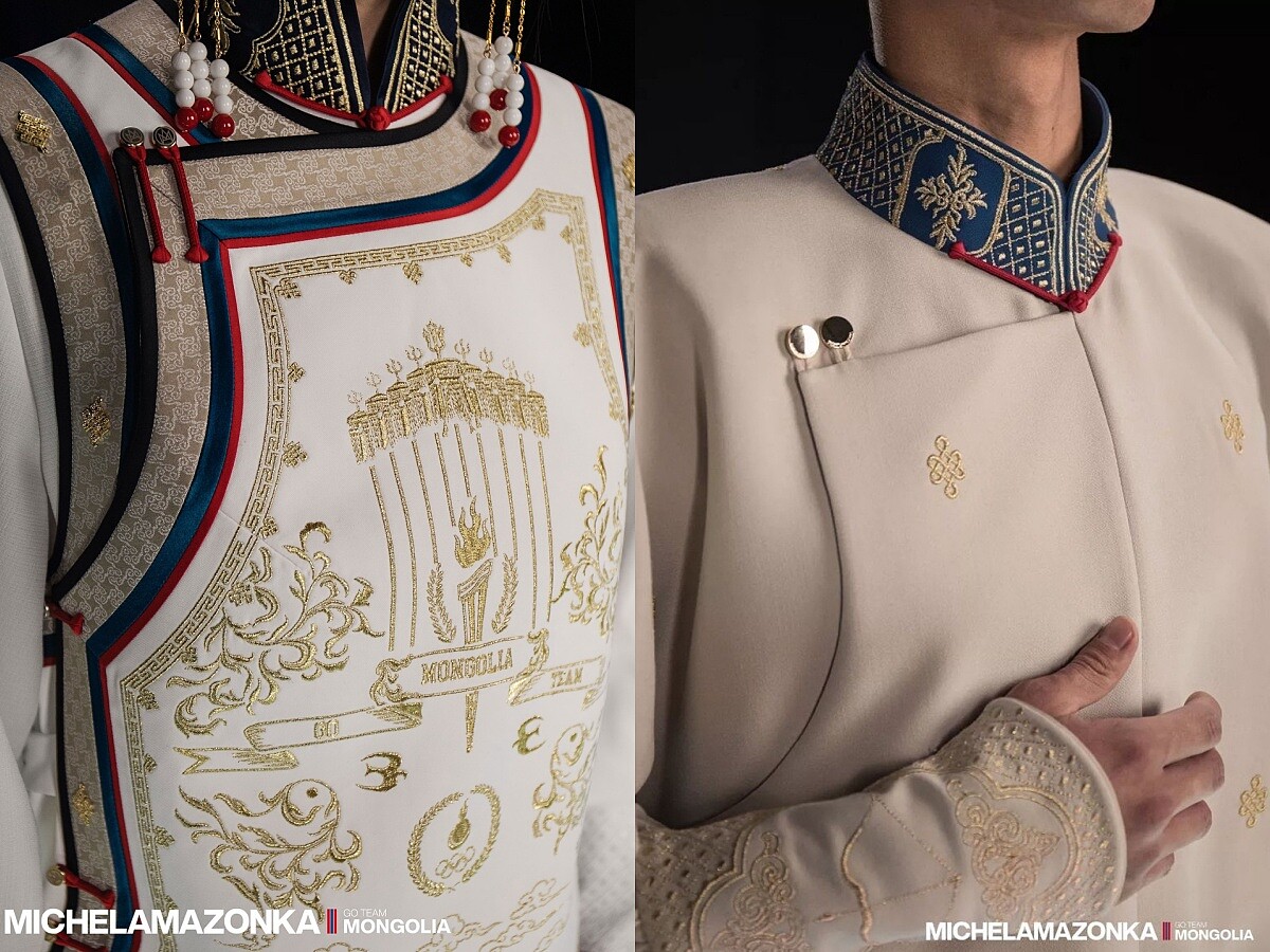 Michel & Amazonka陸續在官方社群平台上分享了本次制服的細節與配件,除了選手的服裝外,進場的旗手服飾也略有不同之處,而本次將蒙古長袍以現代感的方式重新演繹,並結合屬於巴黎奧運和蒙古相關的圖樣元素,可以說是在服裝這塊,蒙古已經成功征服了全球的美感。