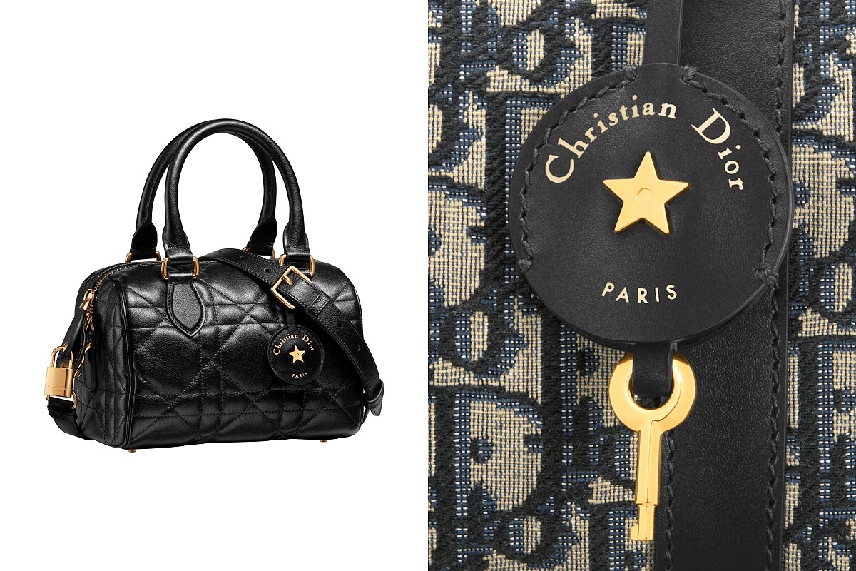 包款上的綴飾延續了Dior的靈魂細節,在手把金屬扣環處有著迪奧先生喜愛的金色幸運星標誌的Christian Dior Paris品牌標誌的鑰匙皮套與鎖頭,更強化了屬於Dior的品牌基因。