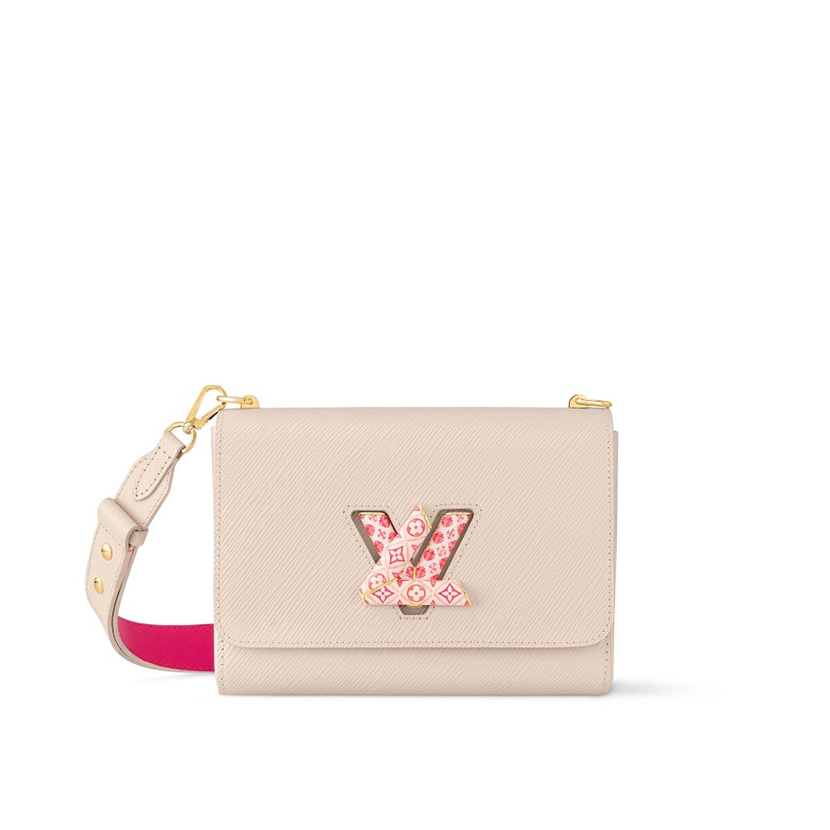 不喜歡太過粉嫩的色系,可以選擇在細節中展現甜蜜,這款Twist就將粉色調點綴在鎖扣與包袋之上。