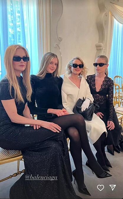 早先巴黎時裝周時,身為精品品牌Balenciaga品牌代言人的妮可基嫚,就帶著女兒Sunday Rose出席品牌時裝秀,兩人都以一身黑的造型現身,母女的眉宇間展現了非常相似的神韻外型。