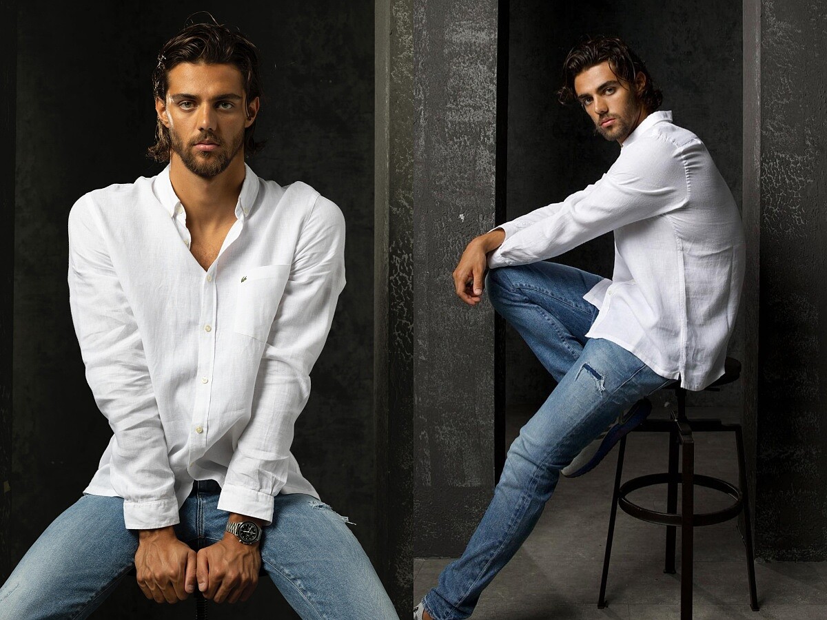 在與髮藝中心Centro Degradé Conseil合作的企劃中,Thomas Ceccon以白襯衫搭配合身牛仔褲的造型出鏡,搭配不羈的落腮鬍,展現屬於義大利男子瀟灑的氣息。