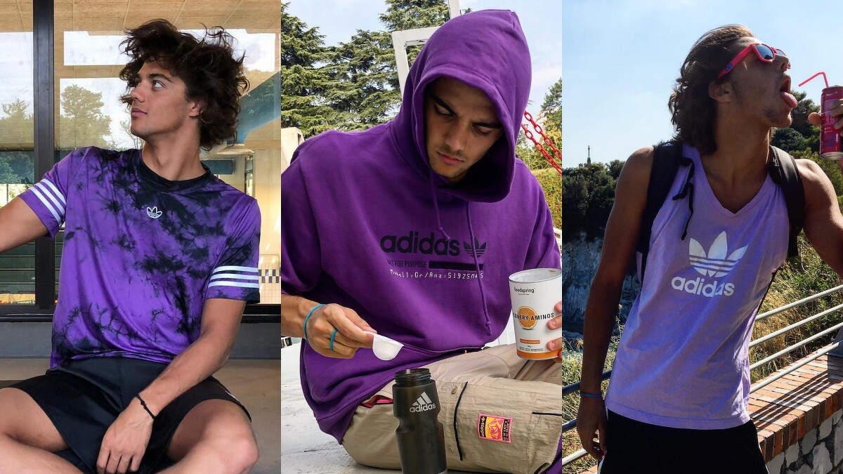 在私服造型中,短袖、連帽上衣、休閒背心等,Thomas都多次選擇了紫色系的上衣穿搭,算是搭配很頻繁的顏色,可見Thomas對紫色的偏愛程度。
