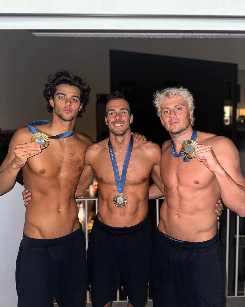 在本屆奧運競賽中拿下個人仰遊金牌的Thomas Ceccon,在與隊友拿下接力賽銅牌後,領獎時高舉雙手歡呼露出人魚線使得人氣再度暴漲,領獎後Thomas更是上傳了與隊友三人上身打赤膊只穿短褲的慶祝合照。