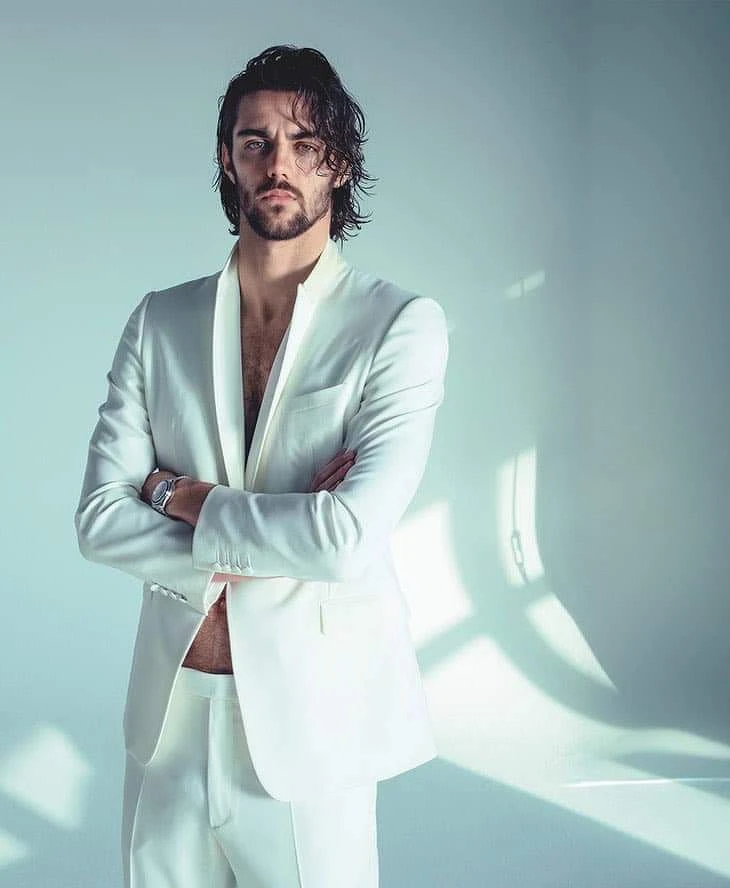 在接受義大利Style Magazine訪問時,Thomas Ceccon以單穿白色西裝的造型出鏡,旁分的微捲髮,深邃的深褐色眼眸,搭配上恰到好處的露出肌膚,十分迷人。