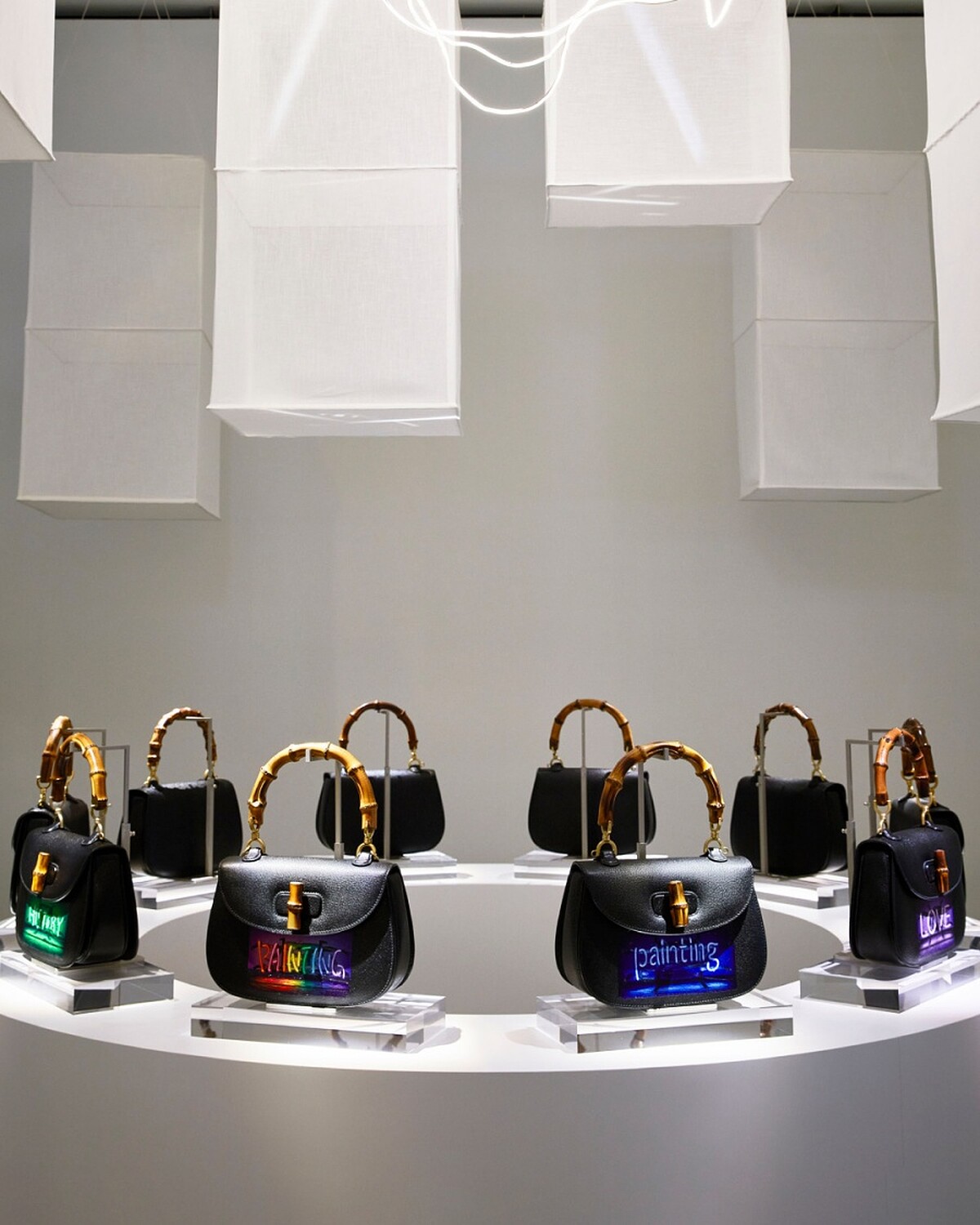 Gucci銀座畫廊(Gucci Ginza Gallery)展開的《BAMBOO 1947: 昔日與今日。慶祝GUCCI在日本60年》特展,現場除了展示從1959年的館藏到創意總監Sabato De Sarno最新設計作品,近400款的Bamboo 1947竹節包之外,還有60款與日本傳統工藝師和當代藝術家合作重塑古董竹節包款,龐大的展出包款數量非常值得一逛。