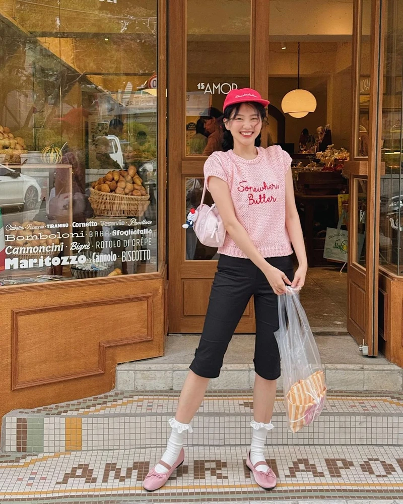 五分緊分褲搭配上芭蕾舞鞋能夠讓雙腿顯得修長,也可以搭上有蕾絲或是澎袖的上衣,整體造型看起來更加有少女感。
