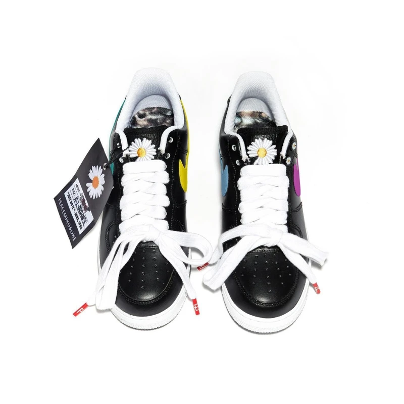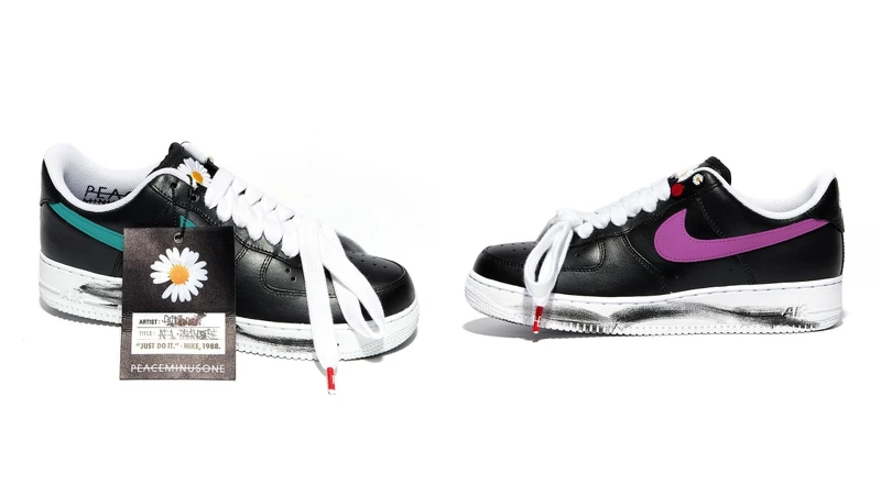 GD(G-Dragon)在2019年退伍開始與NIKE的一系列聯名合作,首先推出的就是以NIKE經典鞋款Air Force 1與個人品牌PEACEMINUSONE的聯名鞋款,結合個人的時尚、音樂與藝術品味,都化作仿舊感的黑色皮革鞋身、小雛菊標誌鞋舌、反繫鞋帶以及剝落塗鴉細節之上,並以「AF1 PARA-NOISE」為其命名。