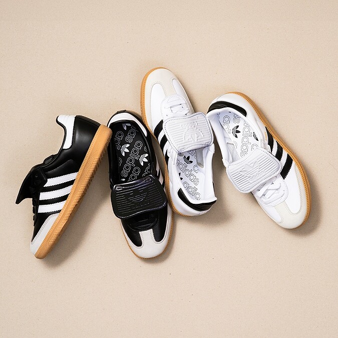 在近年躍升成為國民鞋款的Samba鞋款,陸續推出不同的色系、圖樣與設計,其中Samba LT系列鞋款的外翻大鞋舌設計,為鞋款加入了更加復古的印象,也增添了更多造型感,過去與時裝品牌Wales Bonner合作的鞋款,也是以這個鞋型為主。
