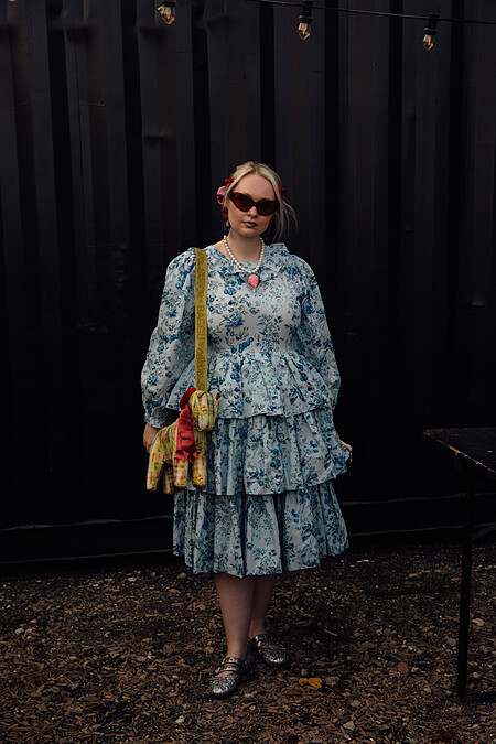 蛋糕洋裝的層次設計賦予碎花可愛與甜美的氛圍,長蛋糕裙也能讓碎花不失輕盈感。