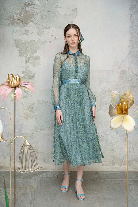有強烈浪漫、輕快且女性感的碎花洋裝,如果加上荷葉邊能有更多少女感,而減少這樣的設計則多了優雅,所以碎花洋裝的整體風格,也很容易被衣服上的細節左右。