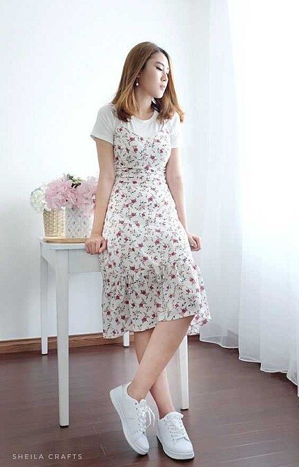 碎花洋裝 x T恤