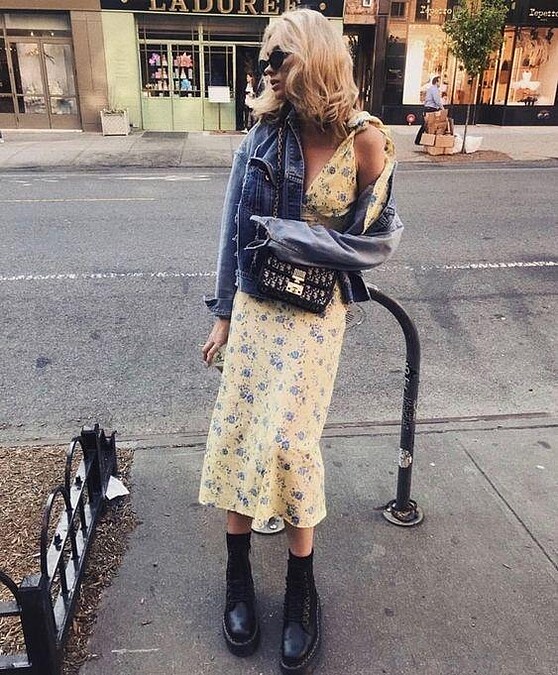 碎花洋裝搭配襪靴時尚又有個性,完美結合了柔美與摩登感,這種搭配能夠為整體造型增添時尚和個性元素,黑色襪靴是最常見且百搭的選擇!