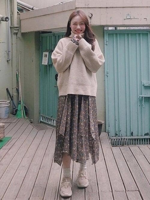 碎花洋裝 x 寬鬆針織毛衣