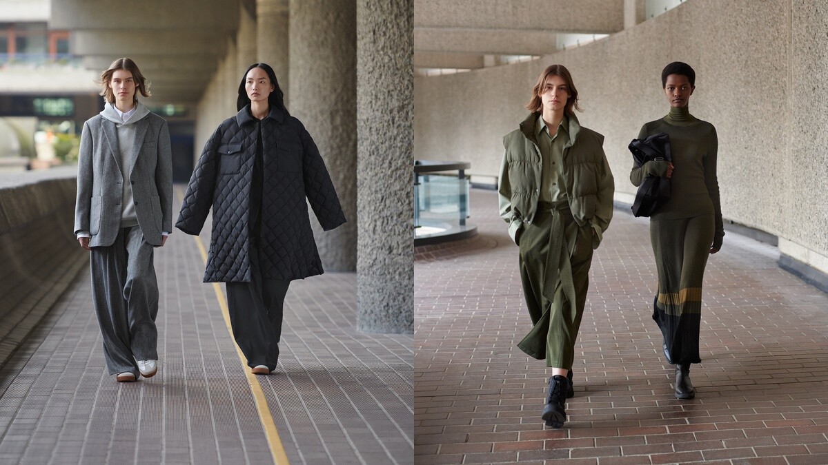 UNIQLO:C 2024秋冬系列靈感源於倫敦地標建築—巴比肯藝術中心,因此可以在服裝上看見精簡直覺、建築美學的線條,色調上也與前兩季不同,這回Clare Waight Keller的調色盤裡都是嚴謹柔和的中性色調,也像是經過自然侵蝕的建築顏色,其中比較亮眼的是一抹清淡的粉色,運用在各式單品上。全系列涵蓋男、女裝、配件,共44款單品。
