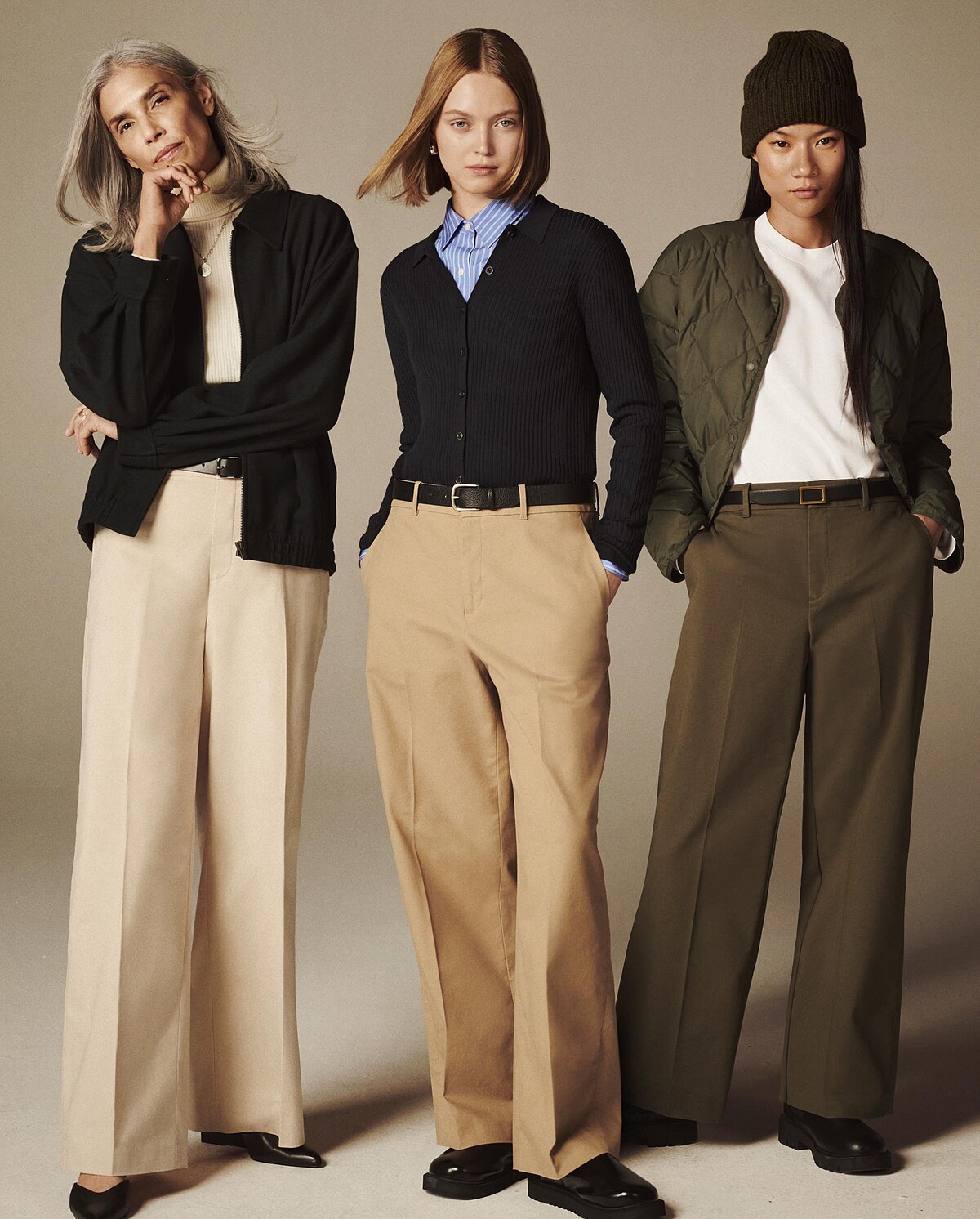 注入了日系職人超絕審美的高級配色,同時剪裁上也以適合東方女性體型為基礎,無論是職場正裝、靜奢老錢、城市風工裝…的各種穿搭風格,UNIQLO「寬版卡其褲」都能輕鬆融入且完美駕馭,可說是流水般的上衣組合X鐵打的卡其寬褲,超值得每色皆入囤好囤滿!