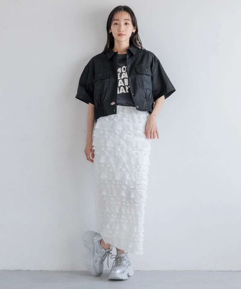 淑女的白色長裙在外套的選擇上較為限縮,但只要搭配顏色粉嫩清透的竹節外套罩衫,就能夠很好地融合。不僅符合夏日繽紛的感覺,壓紋細節更是能夠展現出小巧思,一秒呈現活潑小女生的風格,再透過其他配飾和妝容的幫助,瞬間拉滿氛圍感。