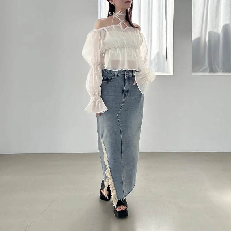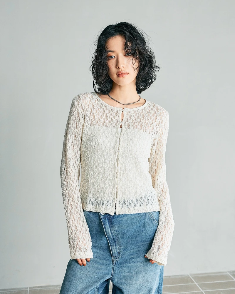 半透膚的上衣罩衫無論內搭或外穿都很適合,想要外穿則是可以搭配短版上衣、背心當作內裏,讓肌膚若隱若現地透出,小露性感之餘,也十分適合高溫悶熱的夏天,讓穿搭多了空氣感及新鮮感。如果版型寬鬆,罩衫會有自然的皺褶與飄逸感,仙氣滿滿。