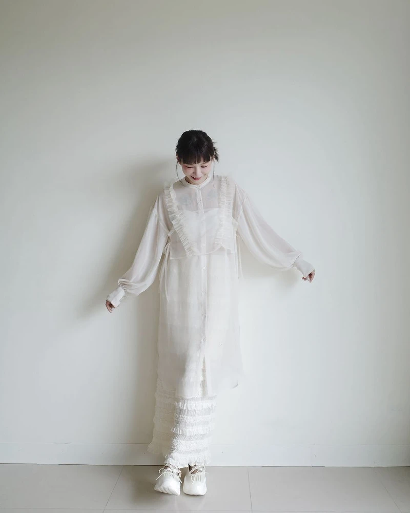 洋裝罩衫配上裙子是仙氣滿滿的穿搭方式!薄透的紗質透出內裏的顏色與材質,像是蒙上一層薄霧,中和色彩的濃淡。如果洋裝罩衫的裙擺版型跟內裏的裙子不同,還可以獲得兩種設計碰撞出的美感,是另一種級別的層次穿搭。