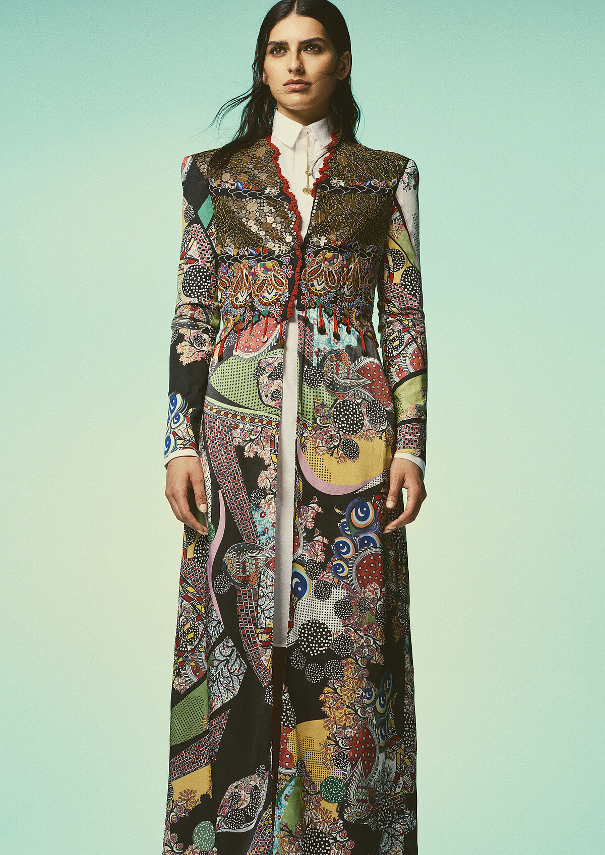 以精緻印度傳統刺繡打造的挺闊長袍,單看或是上身都是份量感十足!