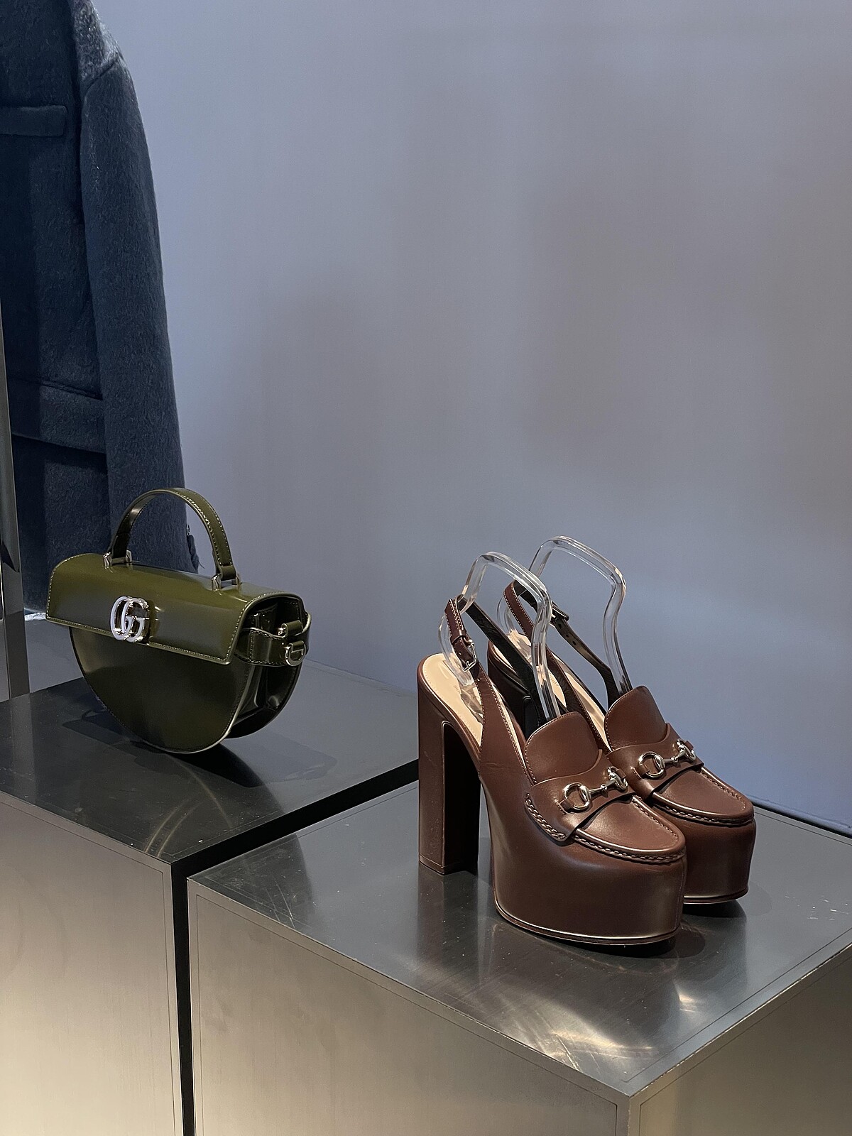 延續自上一季的厚底馬銜鍊樂福鞋,本季De Sarno把它改造成後拉帶的露跟款式,增加露膚度來提升女人味,前高、後高讓鞋跟實際高度差距不會太大,所以並不會像想像中難以駕馭。