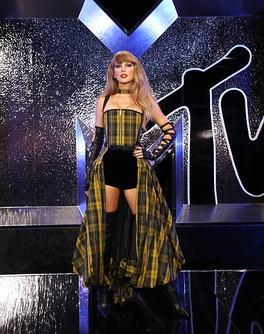 泰勒絲(Taylor Swift)不只是本屆MTV大獎獲得最多提名的人,也是獲得最多獎項的人!她一共橫掃7項大獎成為最大贏家,包括年度藝人、最佳合作、年度音樂錄像帶……等獎項。紅毯上泰勒絲穿著Dior 2025早春度假系列塔夫綢格紋馬甲洋裝,纏繞式手套有種叛逆的打鬥風格,煙燻妝容則成為整體Look的點睛之筆。