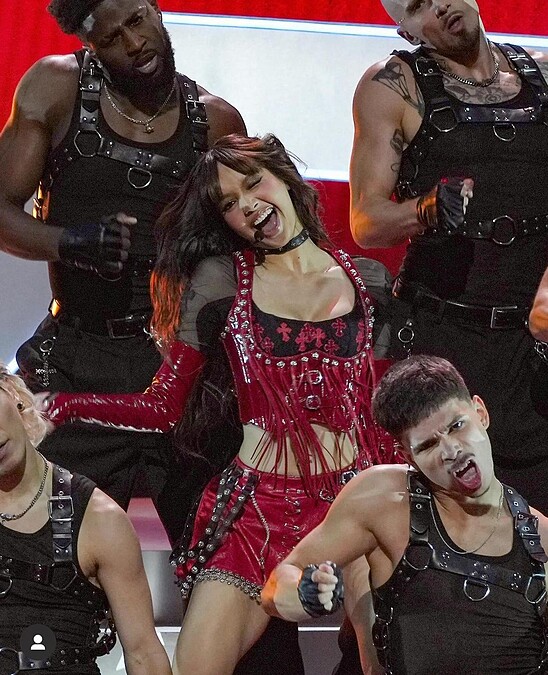 女團Le Sserafim在本屆MTV大獎演出〈CRAZY〉和〈1-800-hot-n-fun〉兩首新歌,比起之前在Coachella的表現,你覺得算是有雪恥成功嗎?紅毯上團員們互相以黑、白色系組合,恩採的紅色褲襪倒是一個亮點。