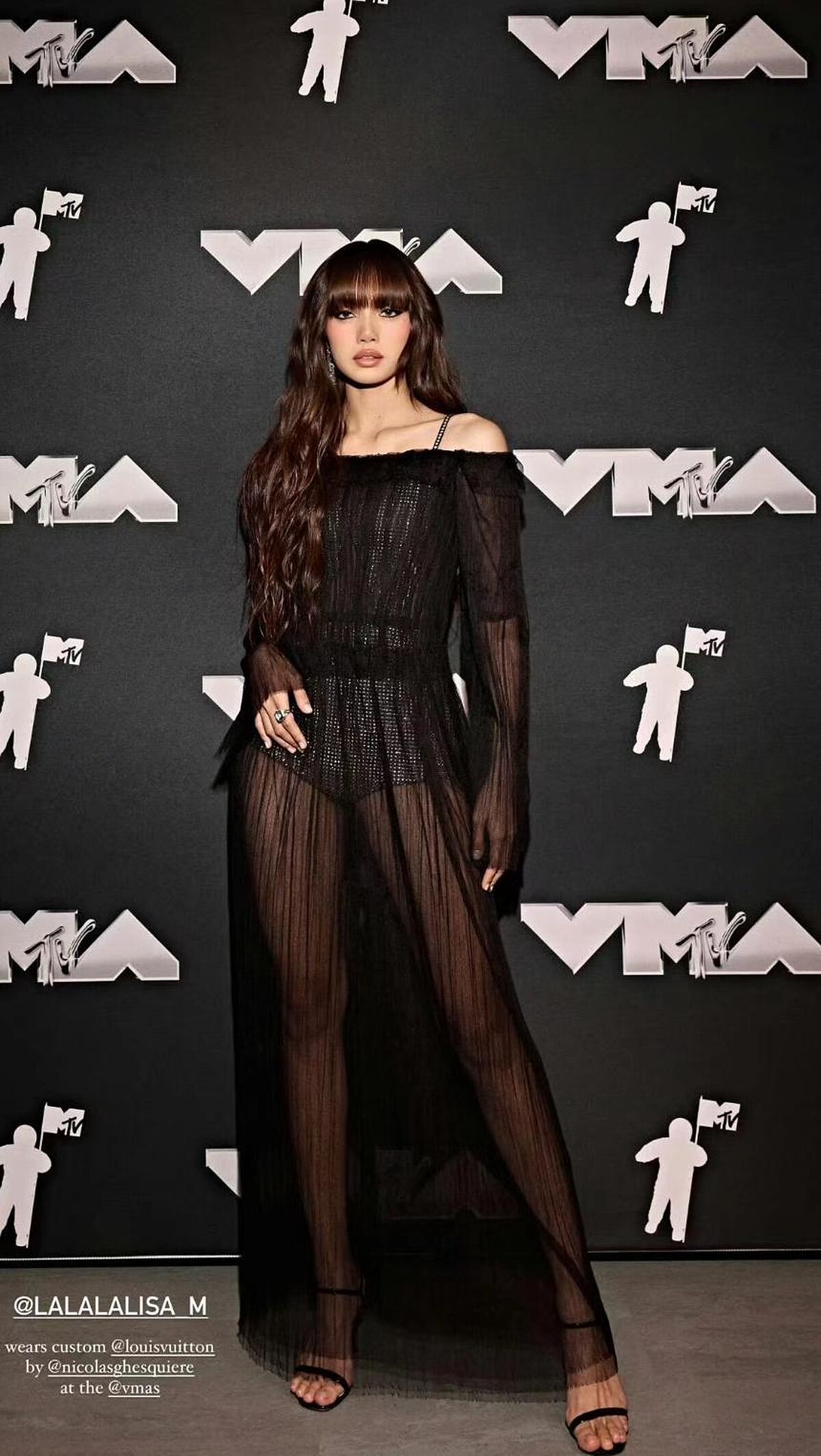 頒獎典禮上Lisa換上由Louis Vuitton特別訂製的透視禮服,讓她修長的雙腿若隱若現,高雅之中還是保持著狂野一面。