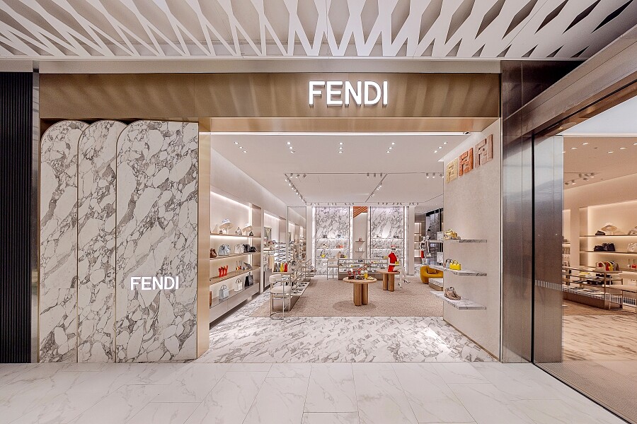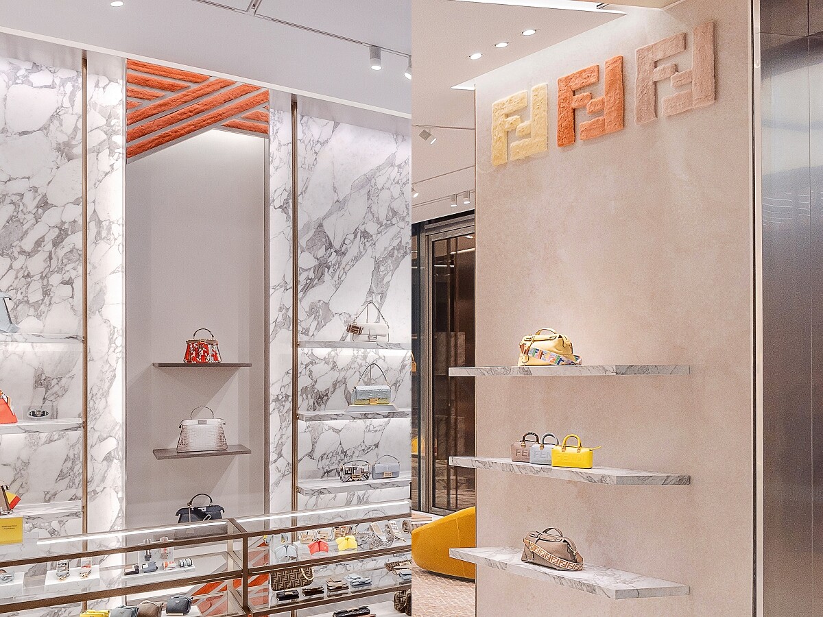 本次FENDI於新光三越Diamond Towers開設的全新女裝專門店佔地約250平方公尺,店內牆面與展台設計靈感皆源自品牌發源地——羅馬,牆面上更搭配由羅馬FENDI皮草工坊手工製作的皮草FF標誌掛飾與皮草畫作,全系列女士時裝、皮革製品、配飾、鞋履等商品都能在店內入手。