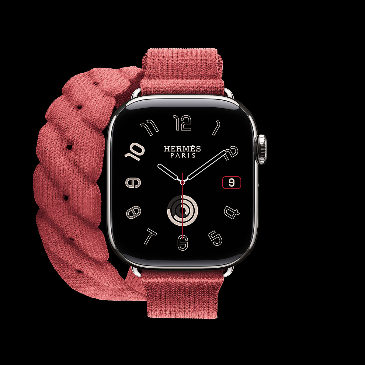 Apple Watch Hermes Series 10, 42 mm case in titanium, knit Torsade double tour band in Rouge Grenat color_NT$ 46,200