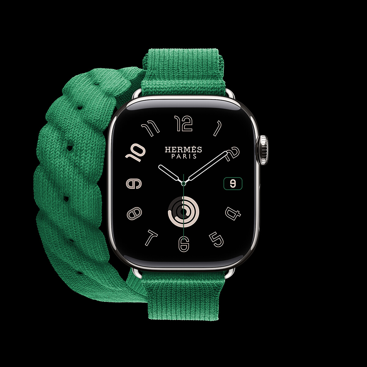 Apple Watch Hermes Series 10, 42 mm case in titanium, knit Torsade double tour band in Vert Moyen color_NT$ 46,200