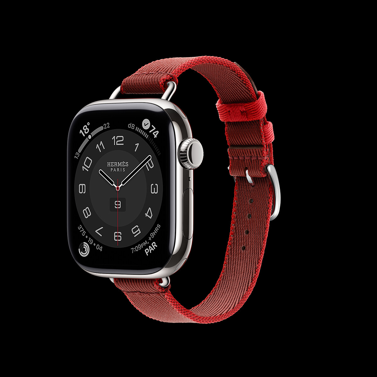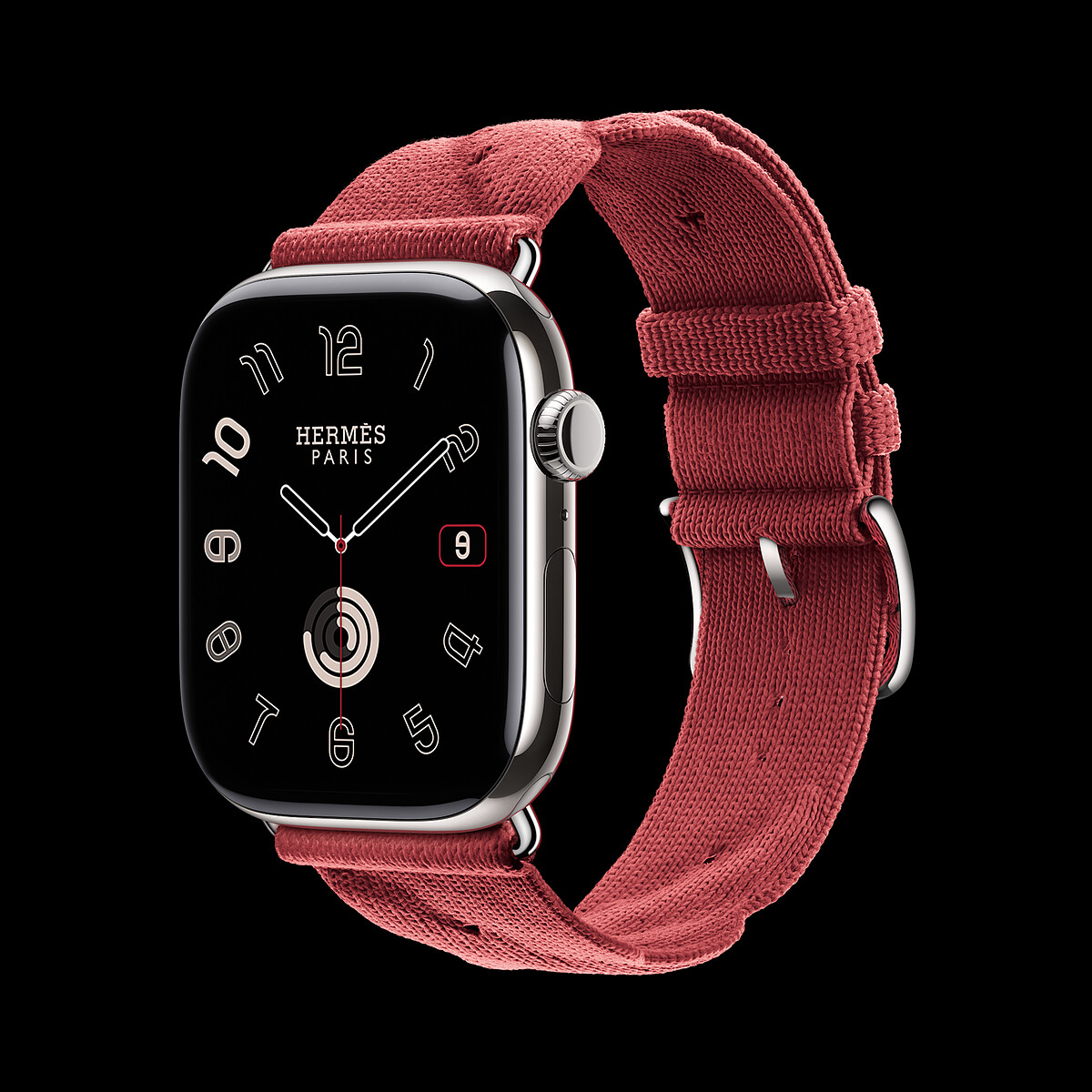 Apple Watch Hermes Series 10, 42 mm case in titanium, woven nylon Twill Jump Attelage single tour band in Rouge Grenat-Vermillon color _NT$ 42,700