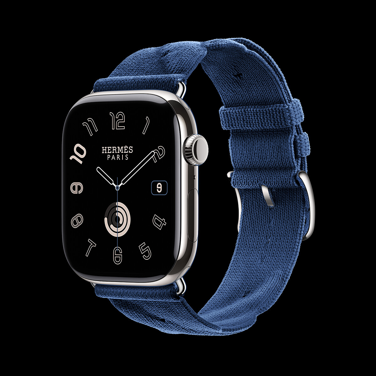 愛馬仕X蘋果推出首款Apple Watch Hermès Ultra,同時也是首款「以數位取代類比」的 Apple Watch Hermès錶盤。設計細節以與Hermès有緊密連結的帆船元素為題,像是由鈦金屬打造之錶殼包覆的獨特Maritime錶盤,將經典的Cape Cod字體與Chaîne d’ancre 圖案結合,共組一大美學特徵;圖形錶圈標示的計時秒數,讓人聯想帆船比賽航道;午夜藍En Mer針織錶帶的搭配,也是十足海事運動風情。