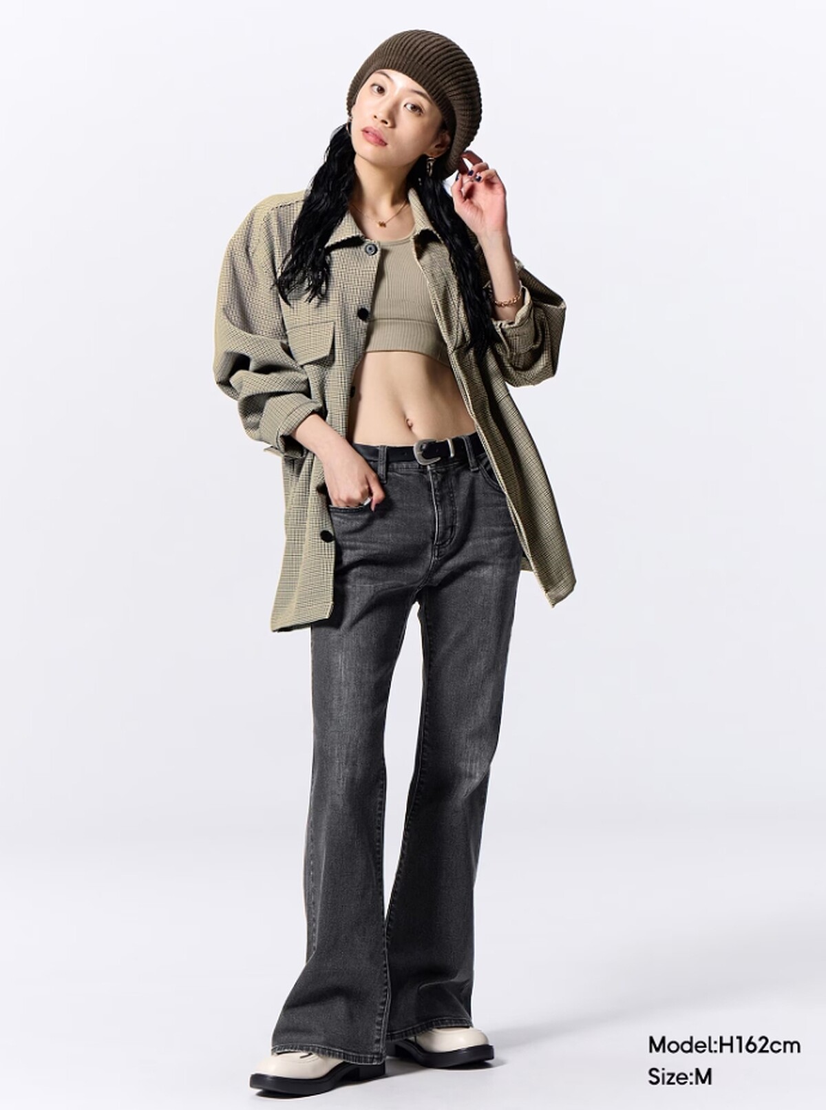還記得先前在Threads上爆紅的GU「錐形褲」嗎?該款錐形褲到現在依然人氣很高,但近期GU有推出另一款合身喇叭牛仔褲,也受到許多日妞的歡迎,修長的版型顯瘦效果十足,同時也很修飾臀腿線條,再穿上一雙厚底鞋腿長簡直太驚人!若害怕骨盆顯寬的話可以選擇長版的上衣來搭配。