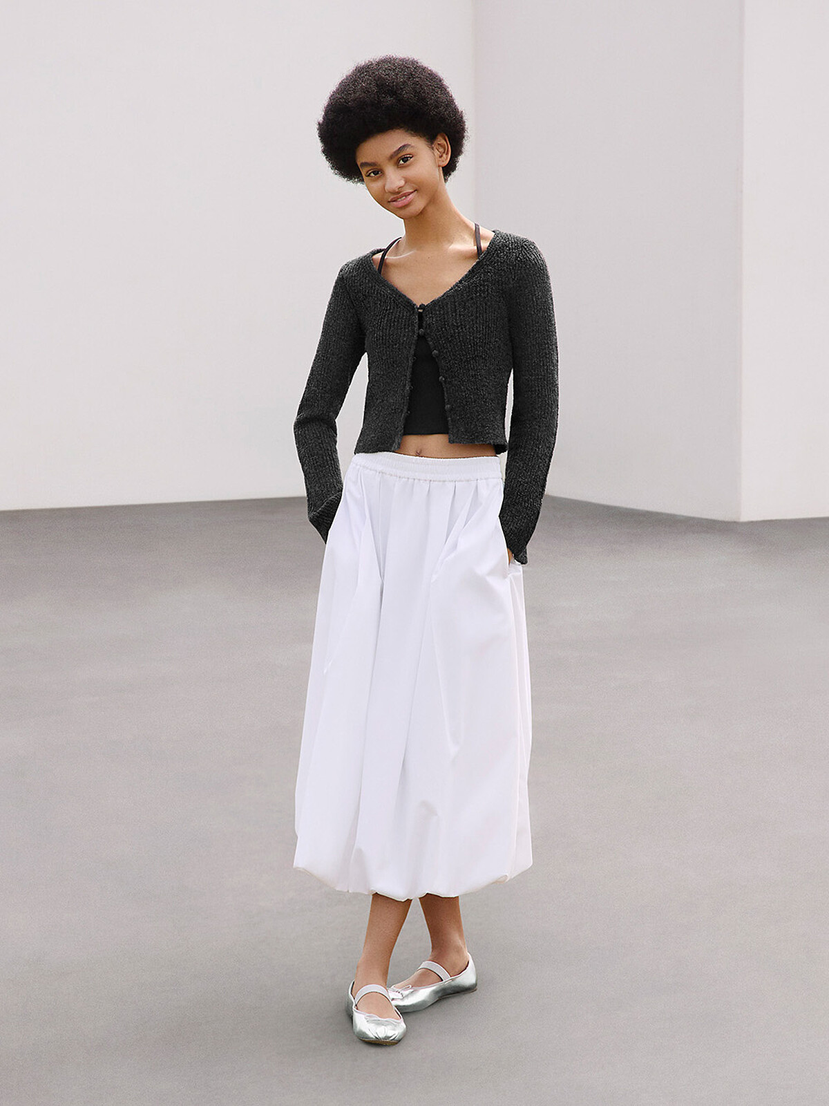 不論在日韓還是歐美近期都相當火紅的花苞裙,GU也有推出,蓬鬆的裙襬收合在最細的腳踝處,完全不挑腿型,與平時日系常見的飄逸傘裙不同,如同氣球般的泡泡裙設計,更兼具俏皮與時髦度。