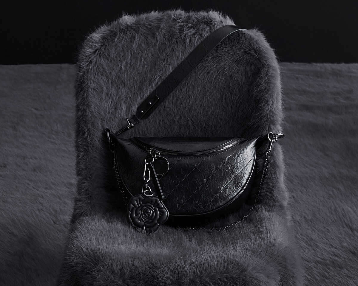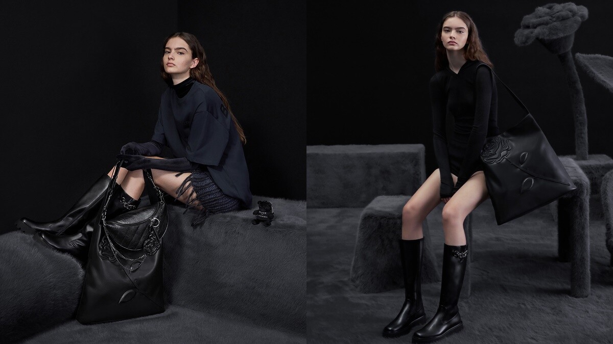 雙方聯名系列中延續了Charles & Keith的暢銷Philomena半月 包型,這是韓韶禧先前便曾在私下使用的同款,這回經過BLVCK的合作改造,除了將原先的金屬鏈帶換為黑色皮革背帶,還在拉鍊的位置加裝一朵暗黑玫瑰,展現低調的浪漫氛圍。