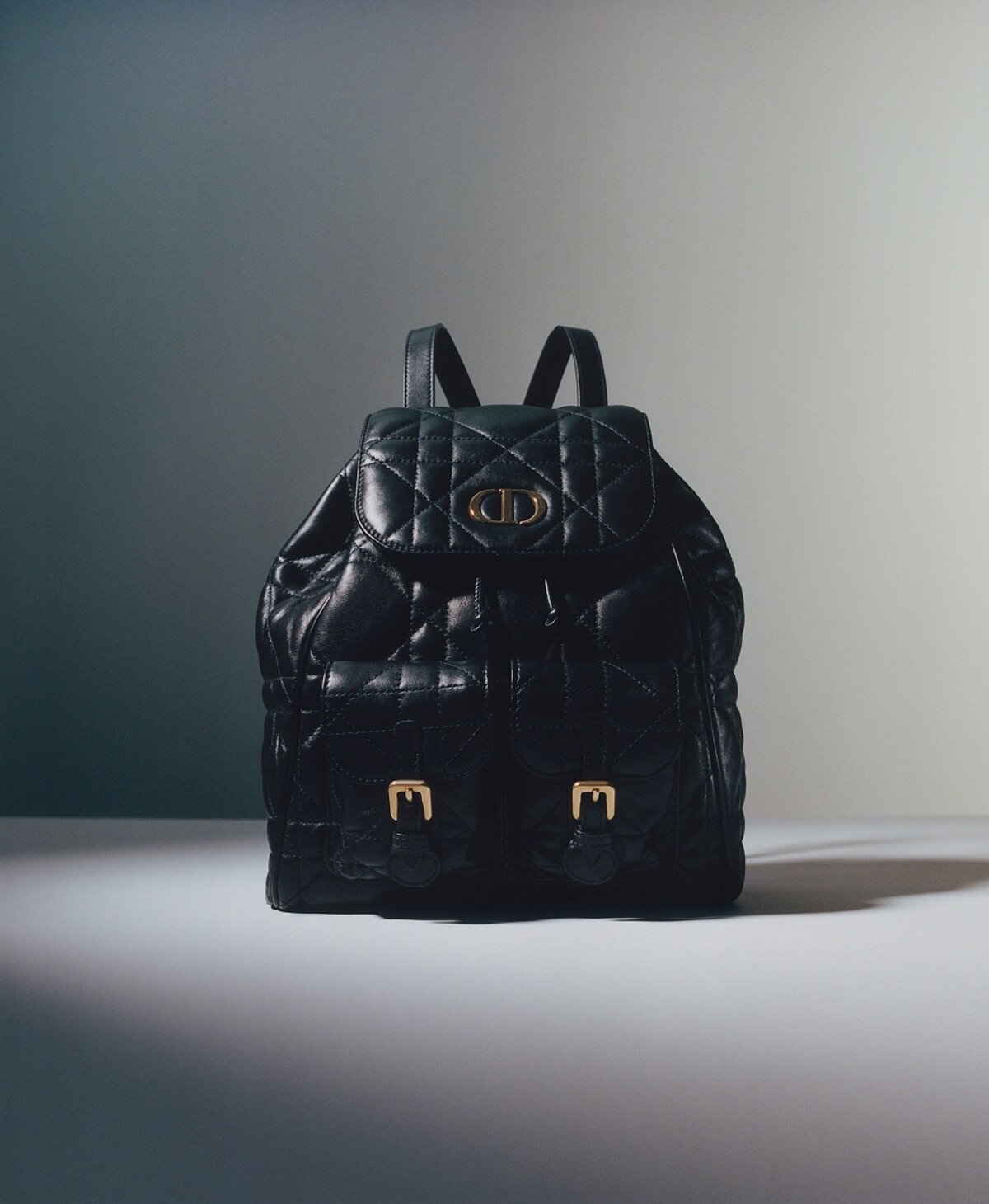 後背包的前扣以品牌名縮寫"CD"金屬標誌點綴,增添了包款的視覺焦點,與光滑柔軟的小牛皮革非常合襯。