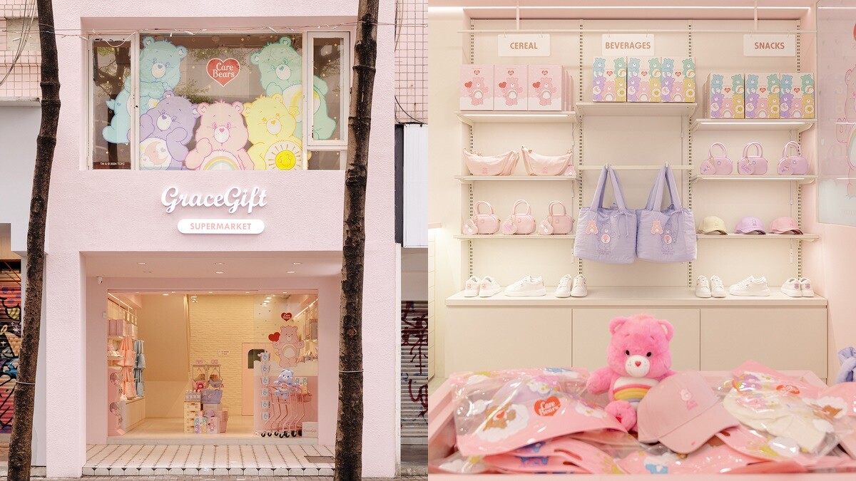 Care Bears彩虹熊自1981年由插畫家Elena Kucharik創作,繽紛顏色的小熊每一隻都有專屬的象徵,用可愛的外型帶給人療癒心情,尤其是近年簡直紅透半邊天!Care Bears成為泰國旅遊必買的伴手禮、韓妞人手一隻的吊飾、泡泡瑪特的明星商品……更是炙手可熱的聯名對象,包括Crocs、Arnold Palmer、VICTOR都曾推出過人氣聯名。Care Bears這回與Grace Gift首度合作陣仗便相當大!於台北西門町開設「Care-A-Lot粉紅小屋」,專賣Care Bears x Grace Gift聯名系列。
