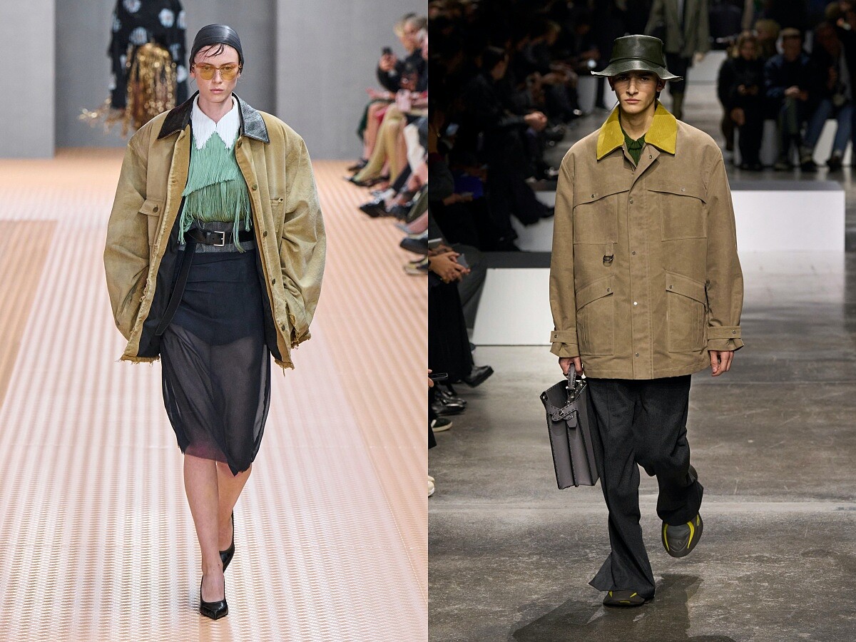 Barn Jacket掀起的熱潮早在2024春夏時裝週秀場上就能看見端倪,從Prada女裝到Fendi男裝的伸展台上都能看到Model們穿著Barn Jacket的造型亮相。