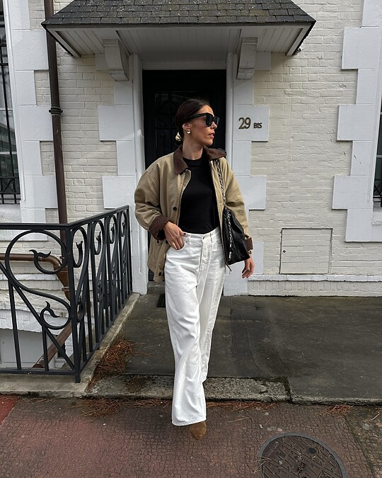 Barn Jacket本身就很適合與日常的經典款單品搭配,展現隨性、舒適的造型,可以選擇一件中性色的Barn Jacket,如棕色或橄欖綠,搭配直筒的牛仔褲,營造出美式風格,下身則可以選擇簡約的運動鞋或短靴,讓工裝的休閒加入時尚感。