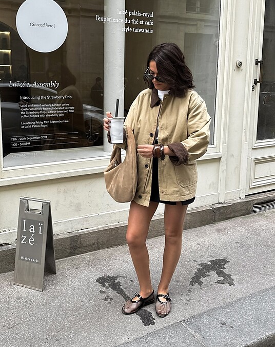 具有工裝外套中性特點的Barn Jacket通常給人一種粗曠、不拘小節的感覺,搭配上近年也非常流行的Y2K學院感百褶裙造型,這樣風格上的對比感形成了硬朗與柔和之間的平衡,既能突顯個性,又不失可愛優雅氣息!