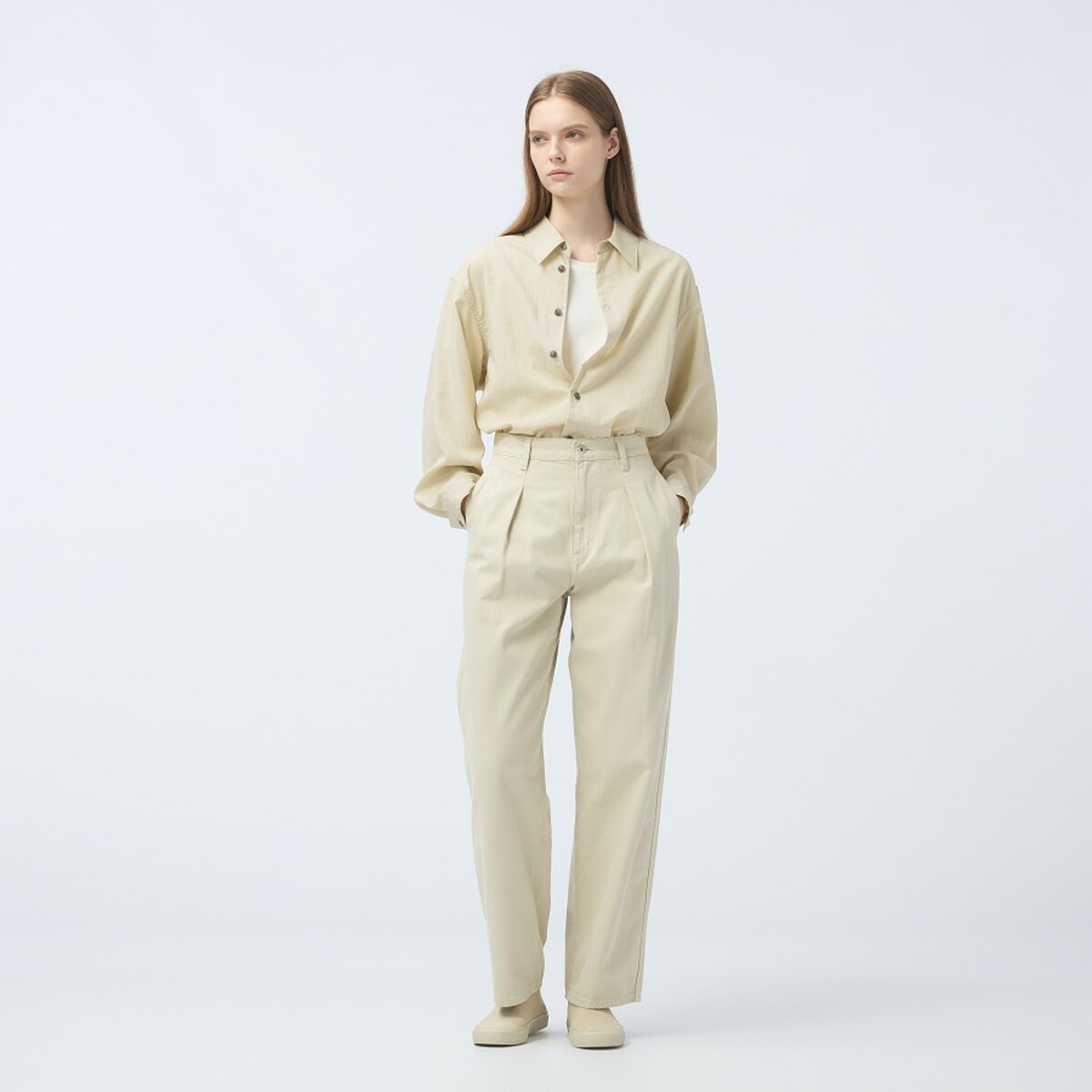 高腰、寬版的經典牛仔褲型設計,加入側邊口袋和打褶細節,展現俐落形象,秋季適合的米色、芥末黃、棕色系,是秋冬的質感搭配必備單品。