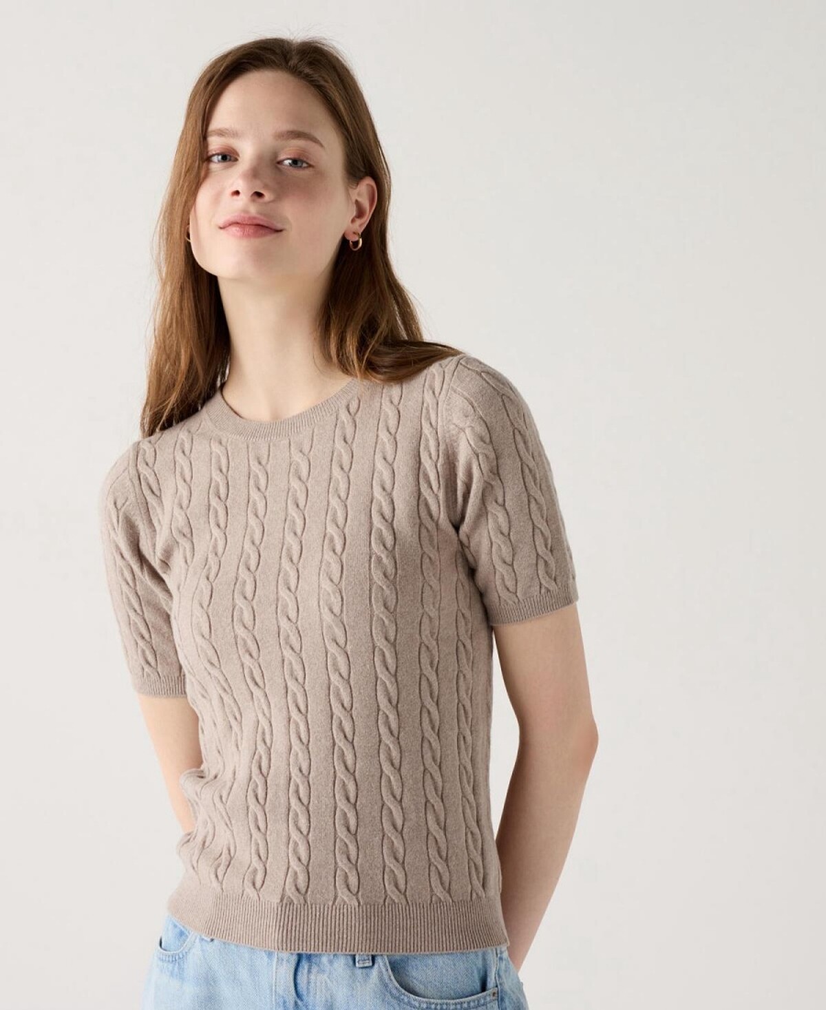 柔軟的棉質混紡素材,搭配上優雅的麻花編織設計增添細節與立體感,不論是單穿或搭配外套,都能展現隨性又時尚的風格。