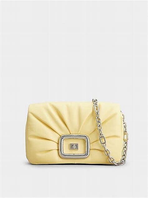 Roger Vivier Viv' Choc系列手袋有著如枕頭般的澎澎外型,是近年的新代表作,柔軟的抽褶皮革將線條匯聚於中心的標誌性方扣,整顆手袋的圓潤輪廓襯托女性溫柔氣質。