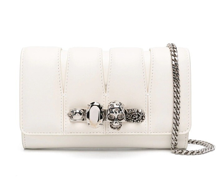 Alexander McQueen經典的骷髏四指戒,是品牌手袋上常見的元素,同時也特別適合朴信惠劇中惡魔的角色!